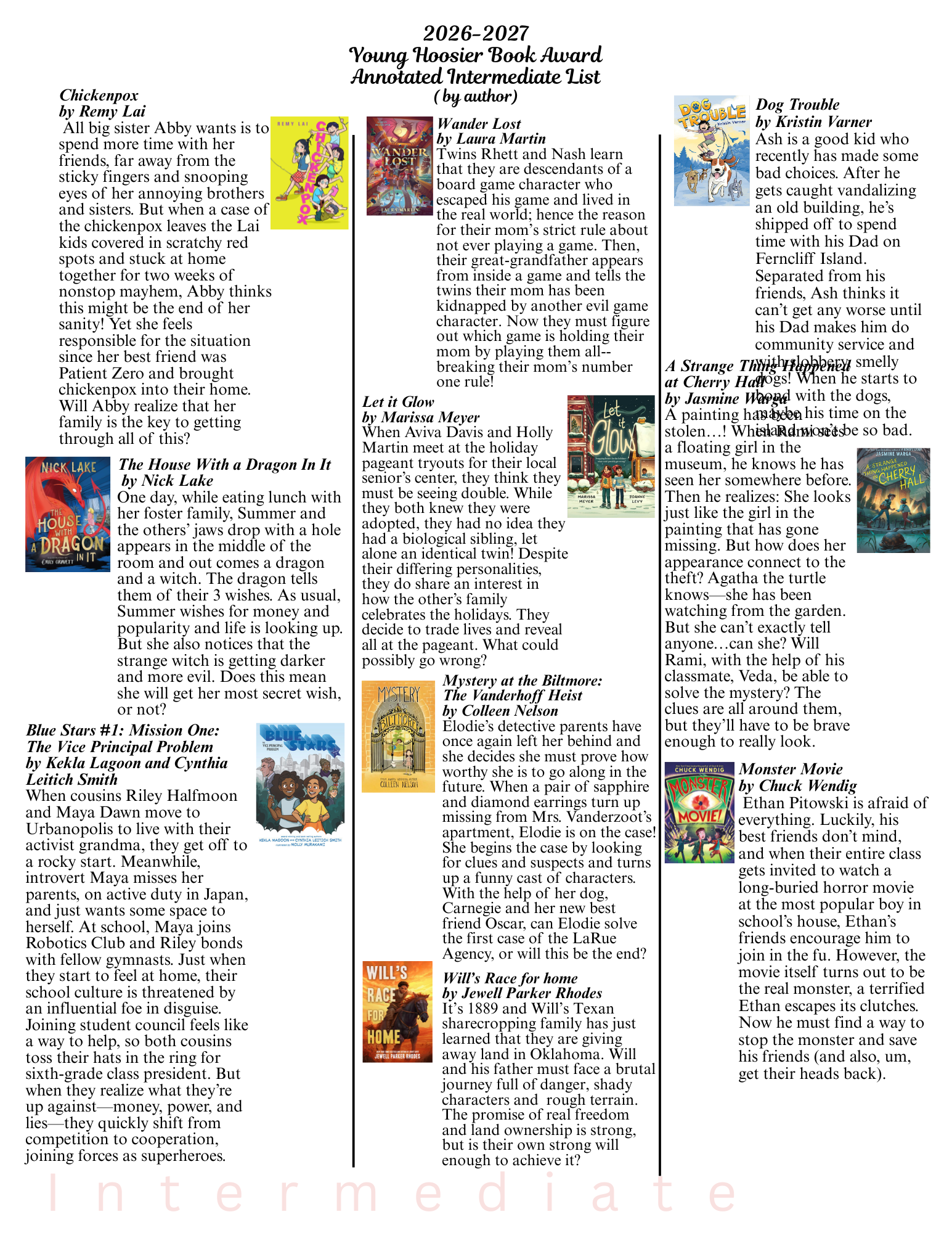 ![]() The Young Hoosier Book Award Program encourages self-selected reading among elementary and middle school/junior high school students. Congratulations to the 2024 - 2025 YHBA Winners!